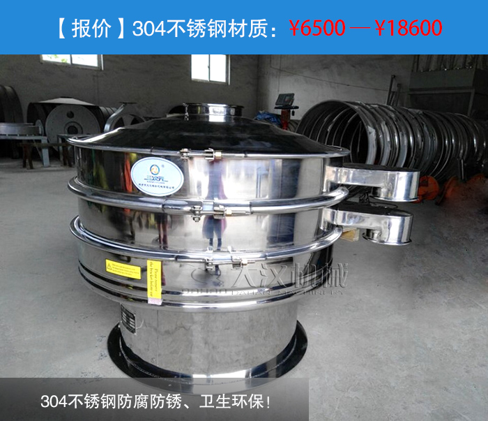 304不銹鋼防腐防銹、衛(wèi)生!——304不銹鋼材質的振動篩是采用304不銹鋼材質(兩種結構規(guī)格:一、整機均采用不銹鋼制成;二、物料接觸不分為不銹鋼材質,底座為碳鋼材質),它是食品、醫(yī)藥專用材質,雖然我們要篩分的是化學物料錫粉,但是對于衛(wèi)生環(huán)境要求較高的企業(yè)這也是不錯的選擇。