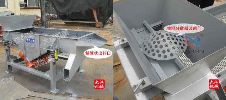 大漢機械廠家根據(jù)客戶要求針對鋸末行業(yè)特殊設計了一款加裝傘形分料器的直線振動篩,解決篩網(wǎng)堵塞問題,鋸末和石頭完全從出料口中排出來,提高了篩分產(chǎn)量。