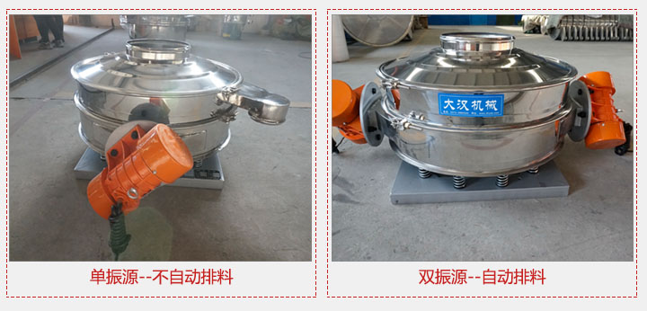 直排篩分單振源與雙振源兩種,其中單振源直排篩用到物料上主要產(chǎn)生上下振動,無自動排料功能,而雙振源直排篩使物料在篩面表面產(chǎn)生漩渦運動,有自動排料功能。
