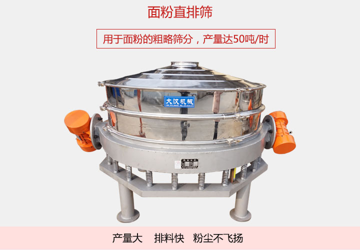 面粉直排篩 又稱面粉振動篩,面粉直排篩因為出料口在下方,排料比較方便而且容易于其它工序連接。面粉直線篩采用304不銹鋼材質(zhì)而成。