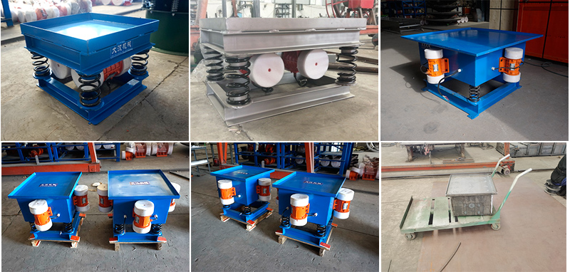 振動(dòng)平臺(tái)于生產(chǎn)流程中用于把顆粒、粉狀物料從散裝到塊狀、形狀等形式的轉(zhuǎn)變,主要用于物料的震實(shí),減少物料內(nèi)的空氣和縫隙,一般和料倉配套使用,在翻砂鑄造行業(yè)、人防門的填充方面以及物料灌裝方面用的一直很廣泛。