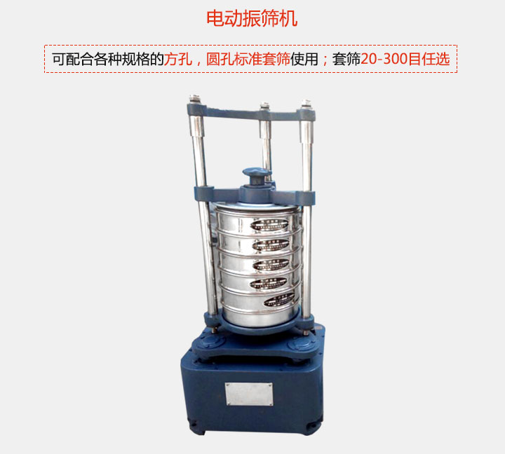 電動振篩機是實驗室中比較常用的篩分設(shè)備,該機可以配合各種規(guī)格的方孔,圓孔標(biāo)準(zhǔn)套篩進行使用,套篩從20-300目任選。
