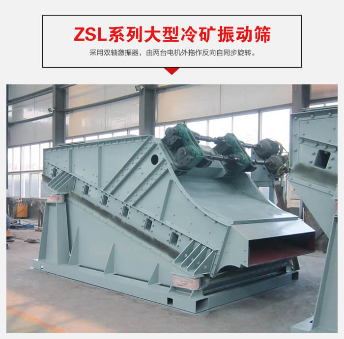 ZSL系列大型采用雙軸激振器,電機不參振,由兩臺電機外拖作反向自同步旋轉(zhuǎn),使篩箱產(chǎn)生較大振幅沿直線方向作周期性往復運動,從而達到篩分目的的一種振動篩設(shè)備。這種振動篩具有生產(chǎn)能力大、工作可靠、振幅調(diào)節(jié)方便、傳給基礎(chǔ)的動負荷小等優(yōu)點。