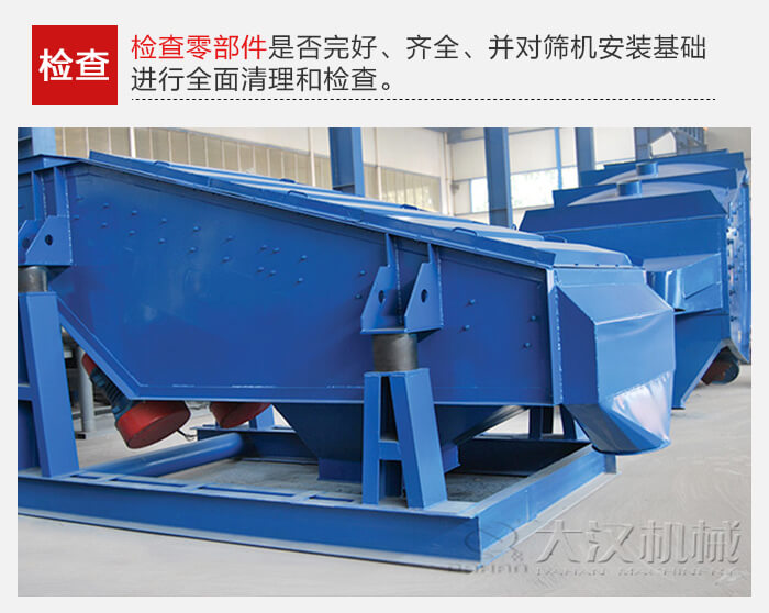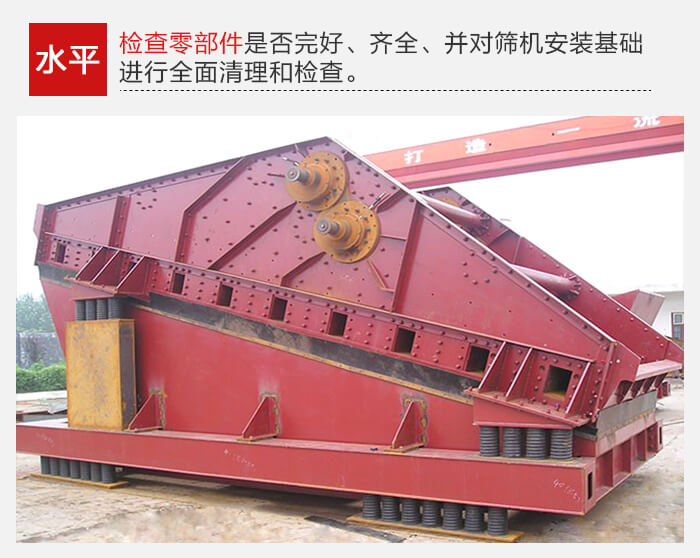 要檢查零部件是否完好、齊全、并對篩機安裝基礎(chǔ)進行全面清理和檢查。