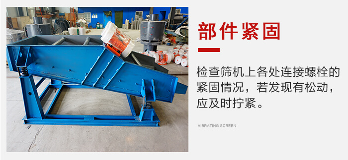 應(yīng)經(jīng)常檢查篩機上各處連接螺栓的緊固情況,若發(fā)現(xiàn)有松動,應(yīng)及時擰緊。